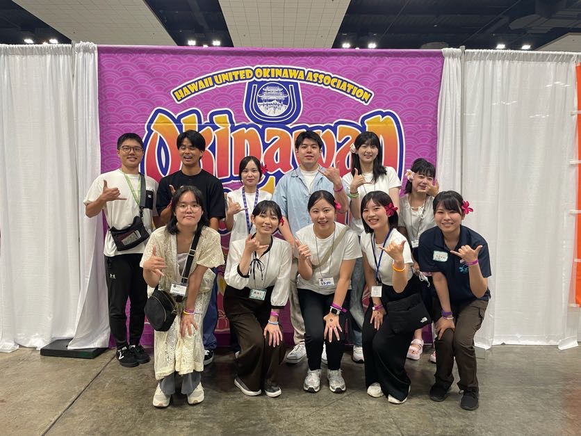 ホノルルでの研修期間中、学生たちは沖縄フェスティバルにも参加し、琉球大学の広報ブースにてインターンシップを経験しました。また、オープニングパレードでの旗持ちやKouryuu Kaiでの通訳業務、Bon Danceへの参加など、さまざまな形でイベント運営に関わりました。今年は沖縄からの移民がハワイへ渡って125周年の節目の年であったことから、沖縄県内の多くの市町村が参加し、例年以上に盛り上がりを見せるイベントとなりました。参加した学生たちも、沖縄とハワイのつながりや、ハワイにおける県系移民の方々の沖縄文化への強い思いを肌で感じる機会となりました。さらに、アリゾナ記念館を訪問し、沖縄とハワイの歴史的背景を比較する視点から、第二次世界大戦や平和教育について改めて考える機会となりました。